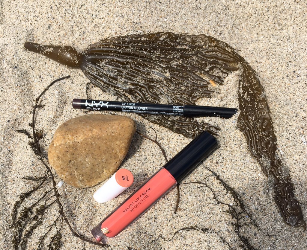I opted for a dark brown lip liner, NYX Slim Lip Liner in ‘Espresso,’ and I applied a long-wearing, matte peach shade. Since the lip cream was a liquid formula, I allowed time to dry before finishing with a glossier lip cream. Peachy lips are happy lips.