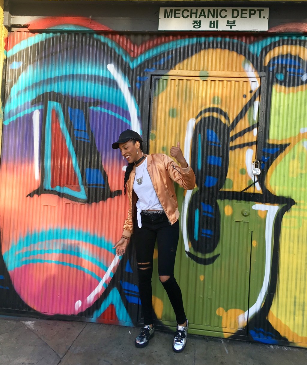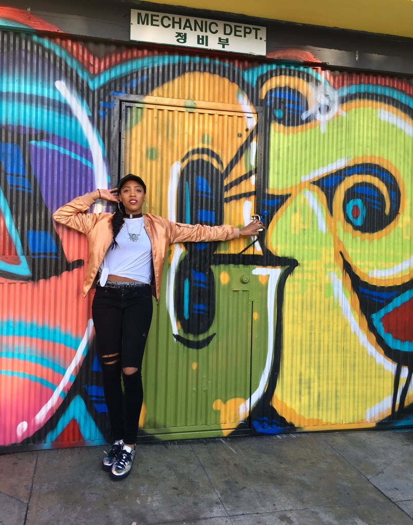 I’m here to break the awkward silence that results from my personal style. But the first rule to being a tomboy (or ‘cool girl’) is to disregard every opinion. I’m not the late Steve Jobs, but I’ll admit, I have a knack for establishing and rotating uniforms that seems to suit my lifestyle in California. Lately, my uniform includes, my DIY ripped black jeans, Calvin Klein underwear, a tied t-shirt or tank, sneakers and a jacket. Since I tend to wear a lot of black, I’m not afraid to amplify my style with edgy accessories, a flirty midriff/sag, and multiple metallics. I’ll still be taking pictures at your nearest graffiti wall– Koreatown will do.