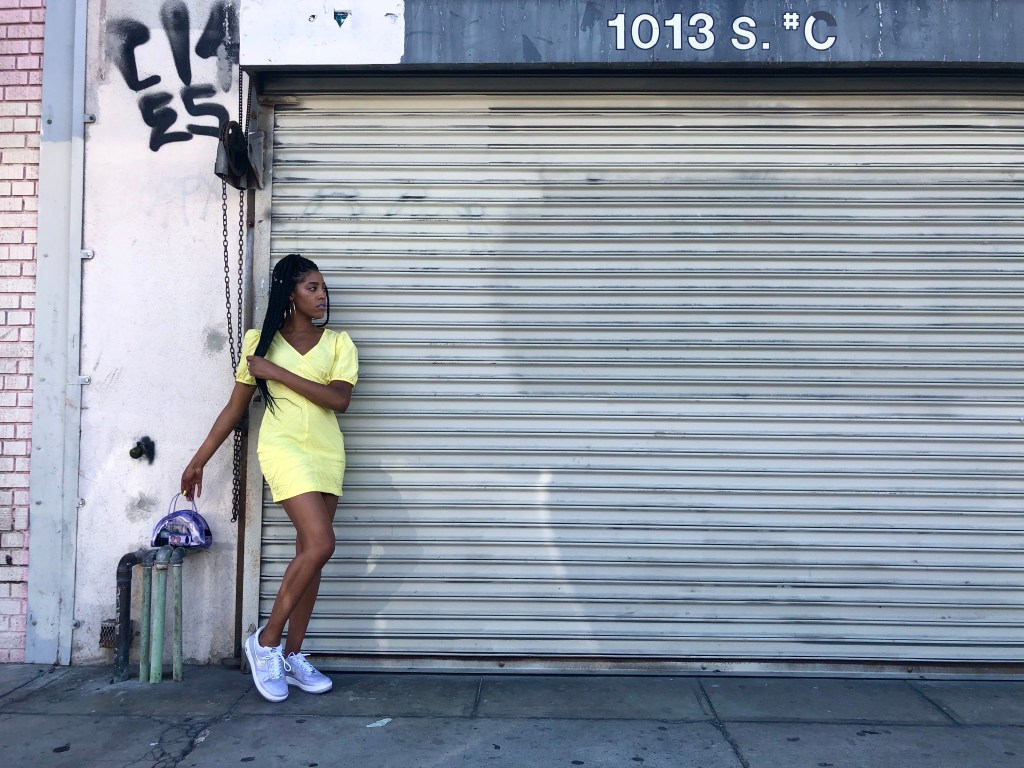 Dress: Zara | Bag: Angel City Brewery Vendor Market | Sneakers: Nike (via Nordstrom)
